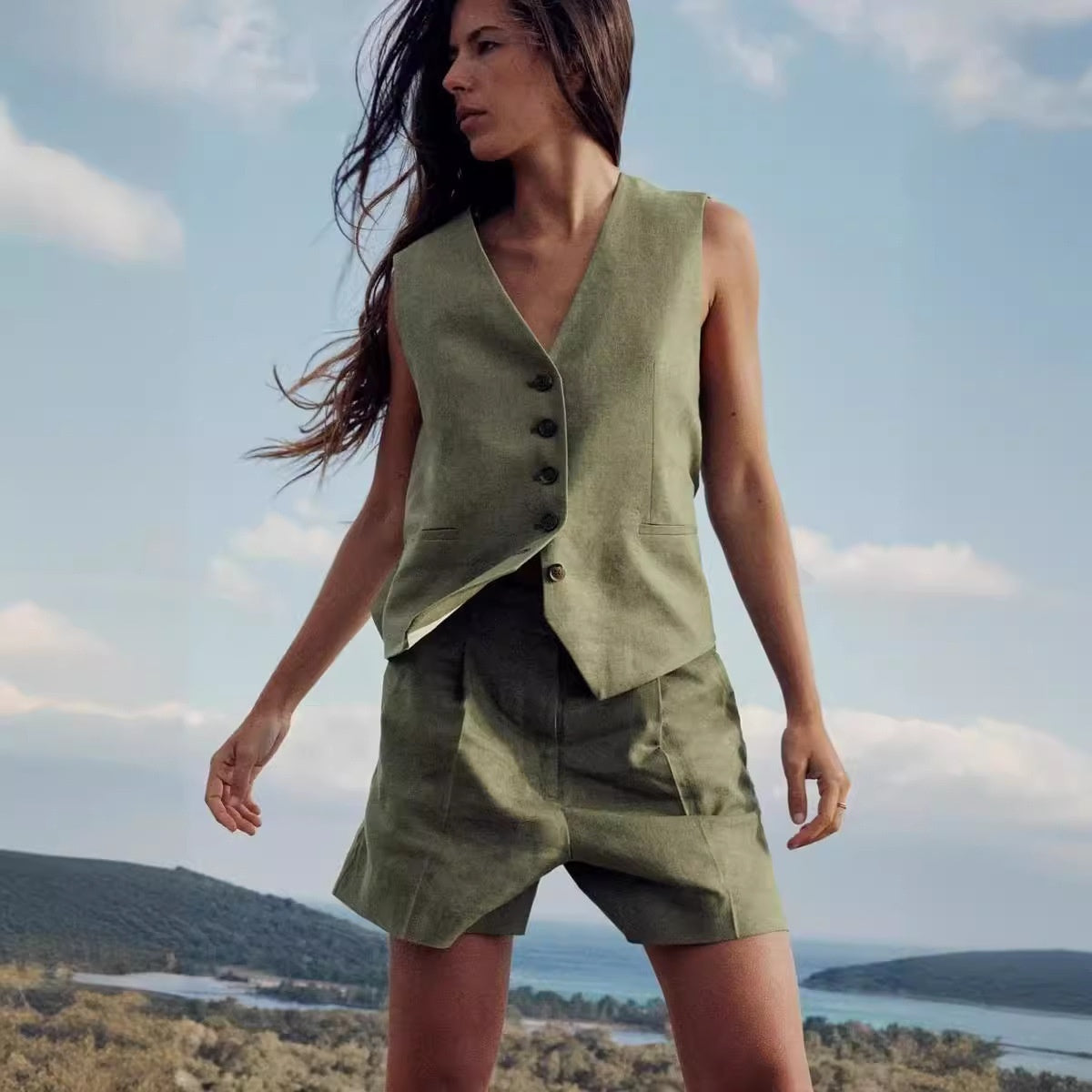 🌿 Summer-Ready – Women’s Linen Blend Sleeveless Top & Shorts Set 🌿 Summer-Ready – Women’s Linen Blend Sleeveless Top & Shorts Set